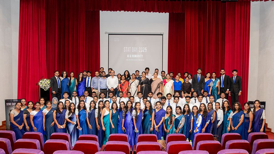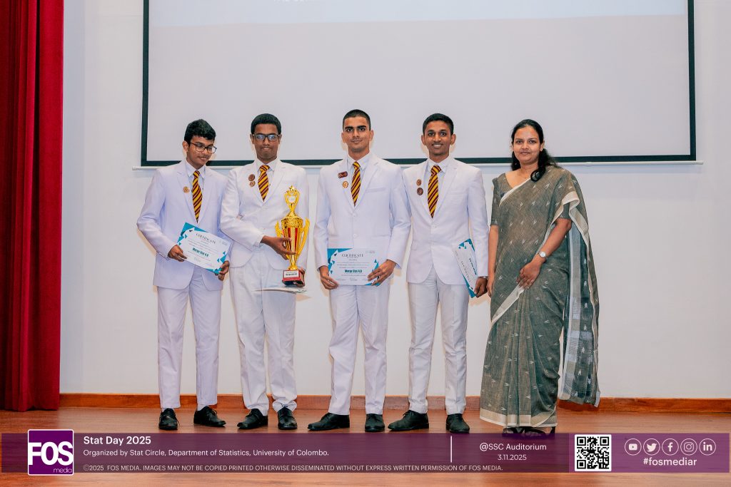 Stat Day 2025, organized by the Stat Circle of the University of Colombo, marked its 22nd milestone under the theme “AI & Humanity: A Dual Evolution of Creativity and Cognition.” The event brought together academics, industry experts, and students for a day of inspiring discussions, competitions, and knowledge sharing. The keynote address by Mr. Harindha Fernando, along with insights from esteemed guests including Senior Professor L. Manawadu, highlighted the growing relationship between artificial intelligence and human creativity. Competitions such as MergeStat 4.0 and ML Nexus 2025 showcased the talents of school students and undergraduates nationwide, emphasizing the importance of bridging theoretical knowledge with real-world applications. The event was further strengthened by the support of Nimbus Labs as the Gold Sponsor and Milliman Sri Lanka as the Silver Sponsor, whose collaboration helped connect academia with industry and provided valuable opportunities for young statisticians to expand their skills and industry exposure. Through collective dedication and teamwork, Stat Day 2025 celebrated statistical excellence while reinforcing the vital role of statisticians in shaping a future where human intellect and artificial intelligence evolve together, inspiring innovation, curiosity, and analytical thinking among future data storytellers.