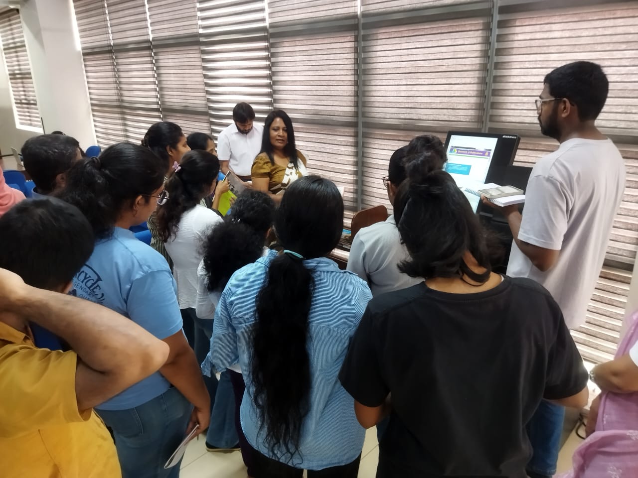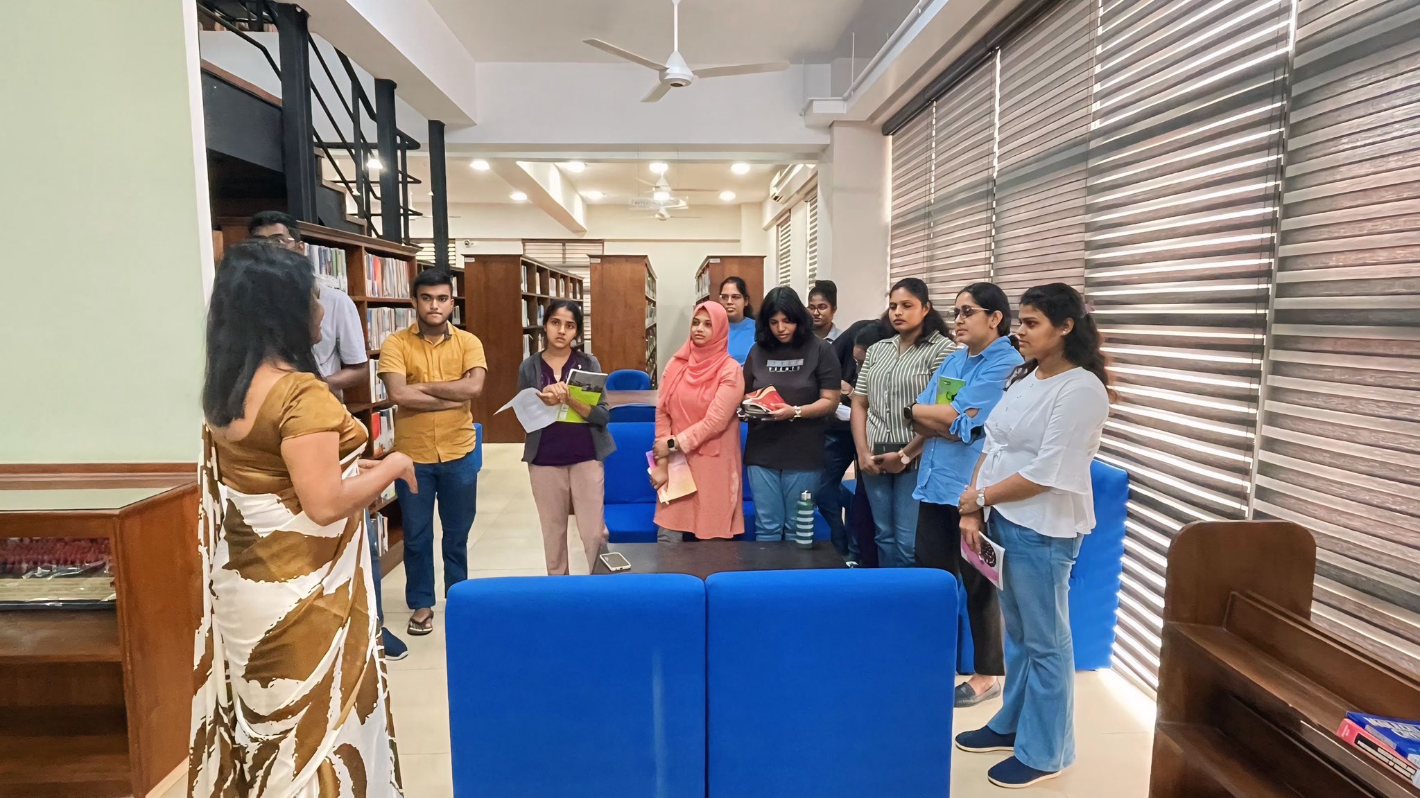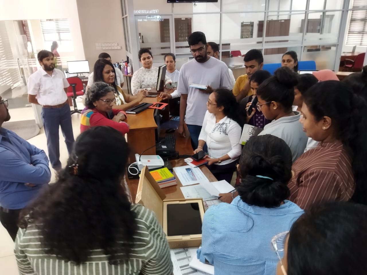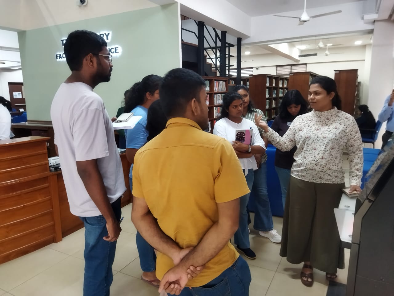 On 31st July, a group of officials from the National Library and Documentation Services Board of Sri Lanka visited the Science Faculty Library at the University of Colombo to gain first-hand insights into the operation of an automated modern library. During the visit, they observed the automated circulation process, including the use of self-check machines, RFID technology, seamless book security, and efficient library management. They also explored how the library has strategically arranged its spaces to meet the changing needs of modern learners, featuring flexible learning zones and technology-enhanced facilities that promote an engaging and user-friendly environment. The visit provided valuable exposure to state-of-the-art library technologies and best practices that are transforming traditional libraries into innovative learning hubs.