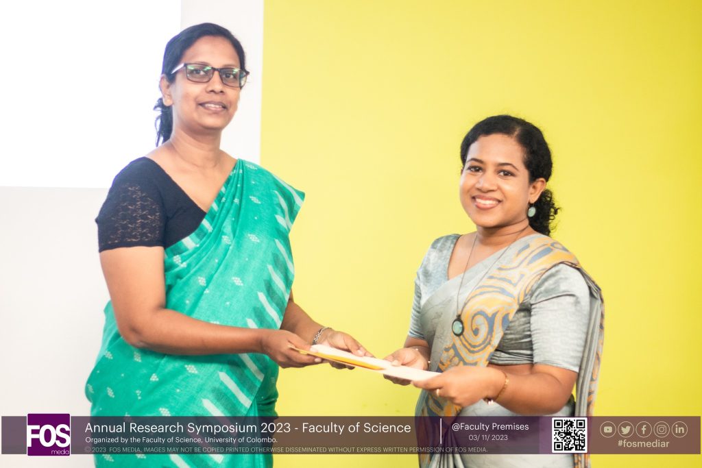 Ms. W. S. N. Alwis receiving the award as the best presenter of the Chemistry session.