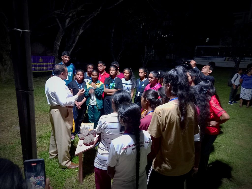 The Astronomy and Space Sciences session of the program took place on 13 th October 2023 in Colombo and was graced by the expertise of two distinguished individuals, Professor Chandana Jayaratne and Dr. Janaka Adassuriya. The event welcomed over 500 school students representing all 25 districts of Sri Lanka. Together, participants explored the fascinating realms of stars, using telescopes to unveil the secrets of the night sky, and embarked on a cosmic adventure by mapping constellations.