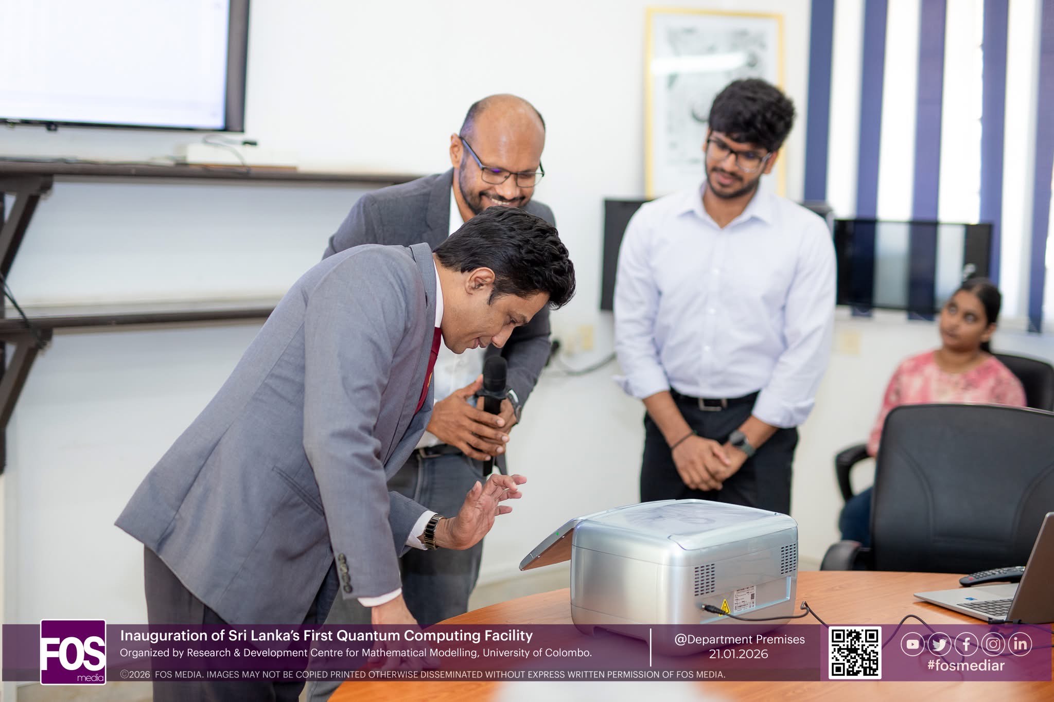 On 21 January 2026, the University of Colombo officially inaugurated Sri Lanka’s first quantum computer at the Centre for Mathematical Modelling (CMM). The ceremony was presided over by Prof. Indika Karunathilake, Vice‑Chancellor, and Prof. Upul Sonnadara, Dean of the Faculty of Science, with participation from Dr. D. B. Dharmasena, Head of the Department of Mathematics, and Prof. Sanjeewa Perera, Director of CMM. Prof. Anuradha Mahasinghe, who has been leading quantum computing initiatives for several years, provided an overview of the project and its academic significance.