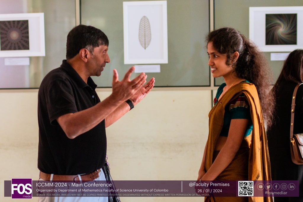 The exhibition was held in parallel to the International Conference on Computational and Mathematical Modelling (ICCMM) 2024, organised by the Centre for Mathematical Modelling, University of Colombo. It was opened at 10AM by Senior Prof. (Chair) H.D. Karunaratne, the Vice Chancellor of University of Colombo, with Prof. Upul Sonnadara, the Dean, Faculty of Science, Prof. Sanjeewa Perera, the Head of the Department of Mathematics, and some administrative staff members. Several foreign and local researchers and enthusiasts were seen at the exhibition, enjoying the beauty of nature formulated mathematically.
