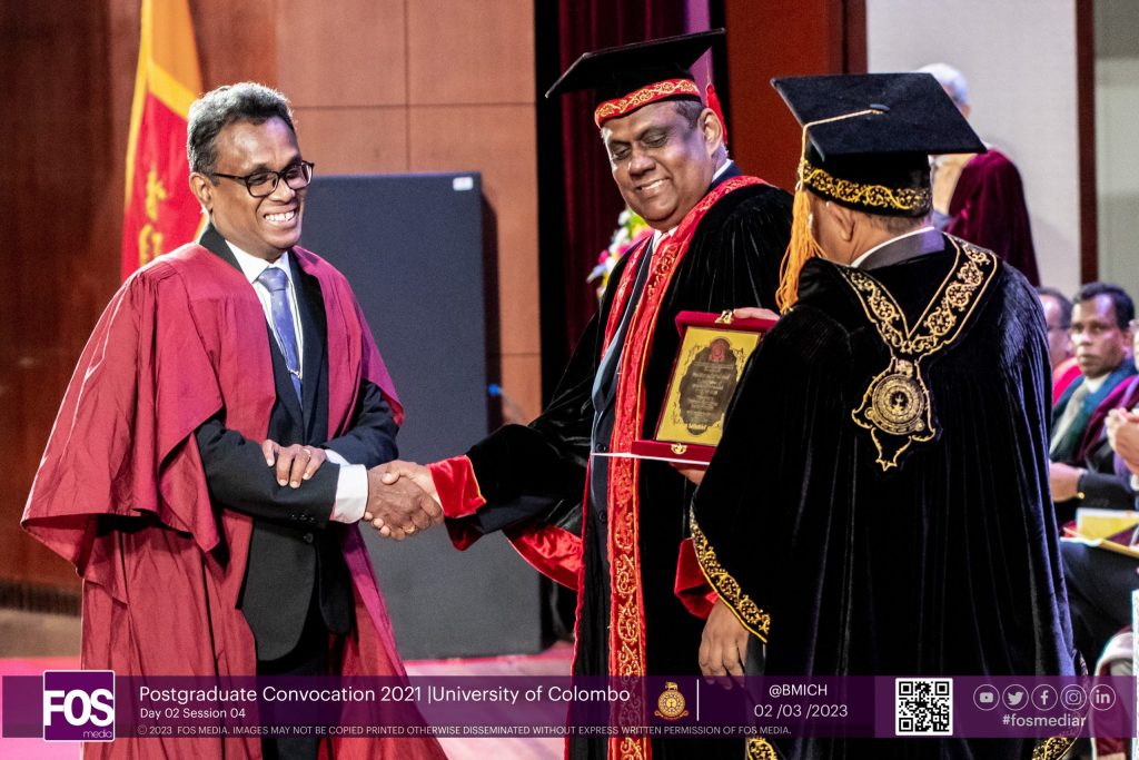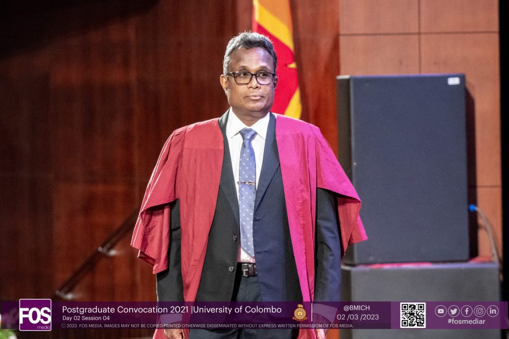 Professor Shyam Sanjeewa Nishantha Perera from the Faculty of Science received the Vice Chancellor’s award for research excellence during the Postgraduate Convocation 2021 on the 02nd of March 2023 at the Bandaranaike Memorial International Conference Hall. Shyam Sanjeewa Nishantha Perera is the Chair Professor of Mathematics and the Head of Department of Mathematics. He holds a First-Class Honours degree in BSc Mathematics, a PG Diploma in Modeling & Complex Realities, a Master of Science (by research) in Mathematical Modeling and PhD in Mathematics.