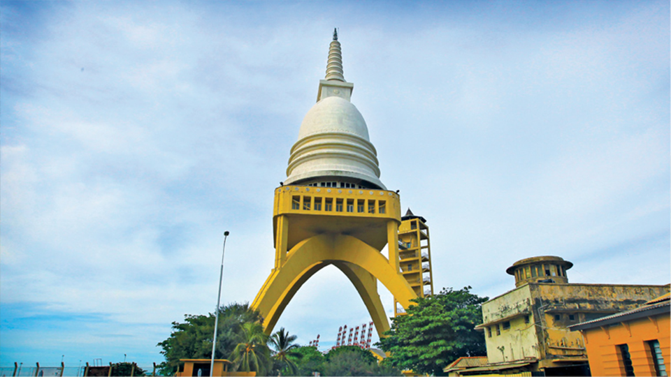 It is a stupa, Buddhist shrine, built with reinforced concrete. Designed by renowned Sri Lankan engineer A. N. S. Kulasinghe and construction began in 1956. Built on a platform supported by two interlocking arches, the stupa is placed above the Marine Drive at the entrance of the Colombo Harbour. The walkway has 123 steps.